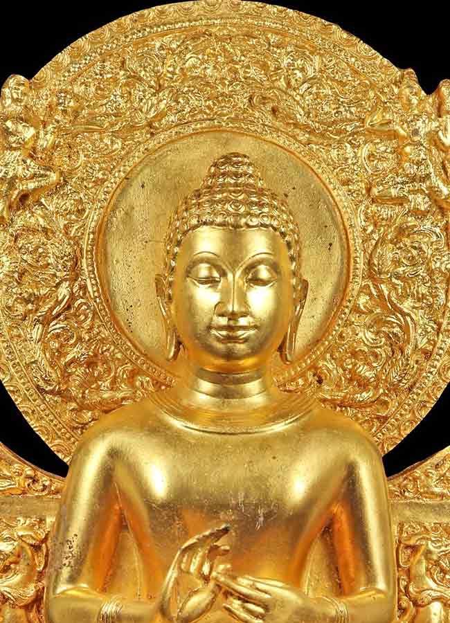 พระบูชาปางปฐมเทศนา ลงทองปี 35 เลขสวย พ 999 ( 5นิ้ว)