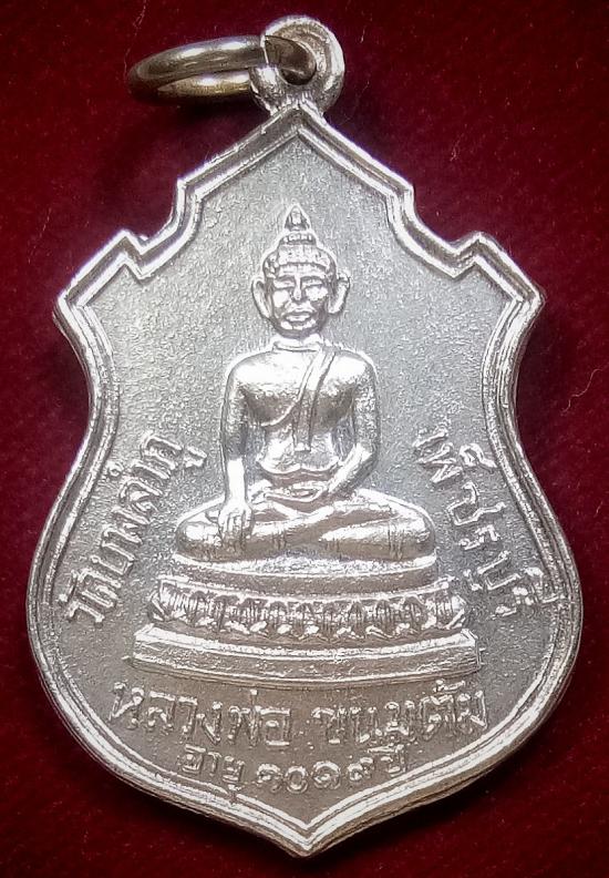 เหรียญ หลวงพ่อขนมต้ม อายุ 1019 ปี วัดบางลำภู จ.เพ็ชรบุรี หลังนางกวัก ปี 13....กะไหล่เงิน |