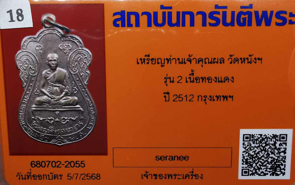 เหรียญท่านเจ้าคุณผล วัดหนังฯ รุ่น2 เนื้อทองแดง ห่วงเดิม(มีจารด้านหลัง)ปี2512 จ.กรุงเทพฯ + บัตรG-pra สภาพสวยเดิมค่ะ |