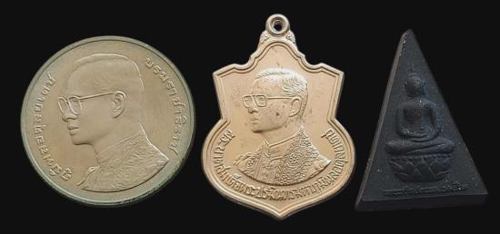 พร้อมกันทีเดียว 3 องค์ครับ เหรียญเสมาที่ระลึก 6 รอบในหลวง รัชกาลที่ 9+เหรียญ20บาท พระราชพิธีมหามงคลเฉลิมพระชนมพรรษา ครบ6รอบ รัชกาลที่9 พ ศ 2542 + พระสมเด็จจิตรลดา พระกำลังแผ่นดิน รุ่น2