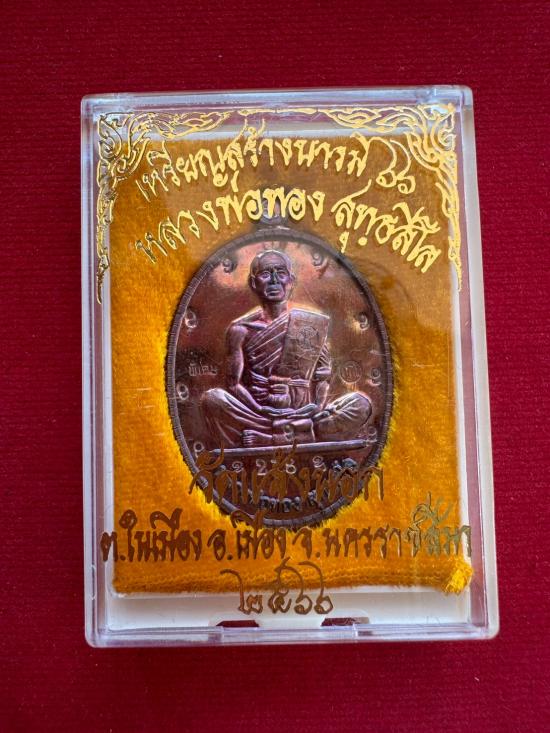 เหรียญหลวงพ่อทอง วัดบ้านไร่ รุ่นสร้างบารมี 66 เหรียญแจกวันเกิด เนื้อทองแดงมันปู โค้ตพิเศษ 9รอบ (สร้าง300 เหรียญ) หมายเลข 218 +กล่อง