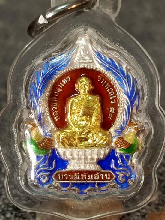 เหรียญ หลวงพ่อสุนทร วัดหนองสะเดา รุ่นบารมีพันล้าน88 [ เนื้อเงินลงยา หน้าทองคำ ] ปี62 พิมพ์เล็ก ตอกโค๊ตหมายเลข 43 พร้อมเลี่ยมกันน้ำอย่างดี