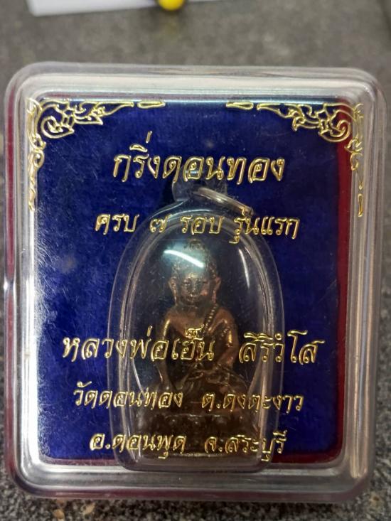 พระกริ่ง หลวงพ่อเฮ็น วัดดอนทอง รุ่นแรก ปี37 [ เนื้อนวะโลหะ ] ตอก3 โค๊ต มีจานย์ พร้อมเลี่ยมพาสติกกันน้ำอย่างดี หายาก สภาพสวยที่สุด กล่องเดิมๆ |