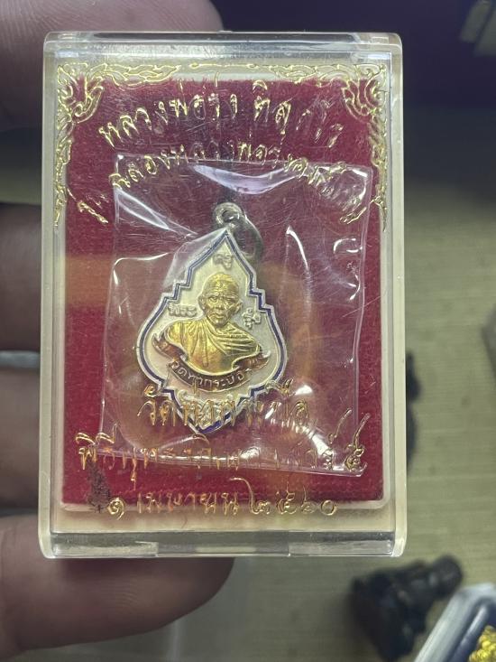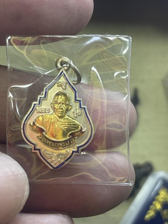 เหรียญพิมพ์เล็ก หลวงพ่อรุ่ง รุ่นฉลองหลวงพ่อรุ่งองค์ใหญ่ เนื้อเงินลงยาหน้าองค์หลวงพ่อสีทอง |