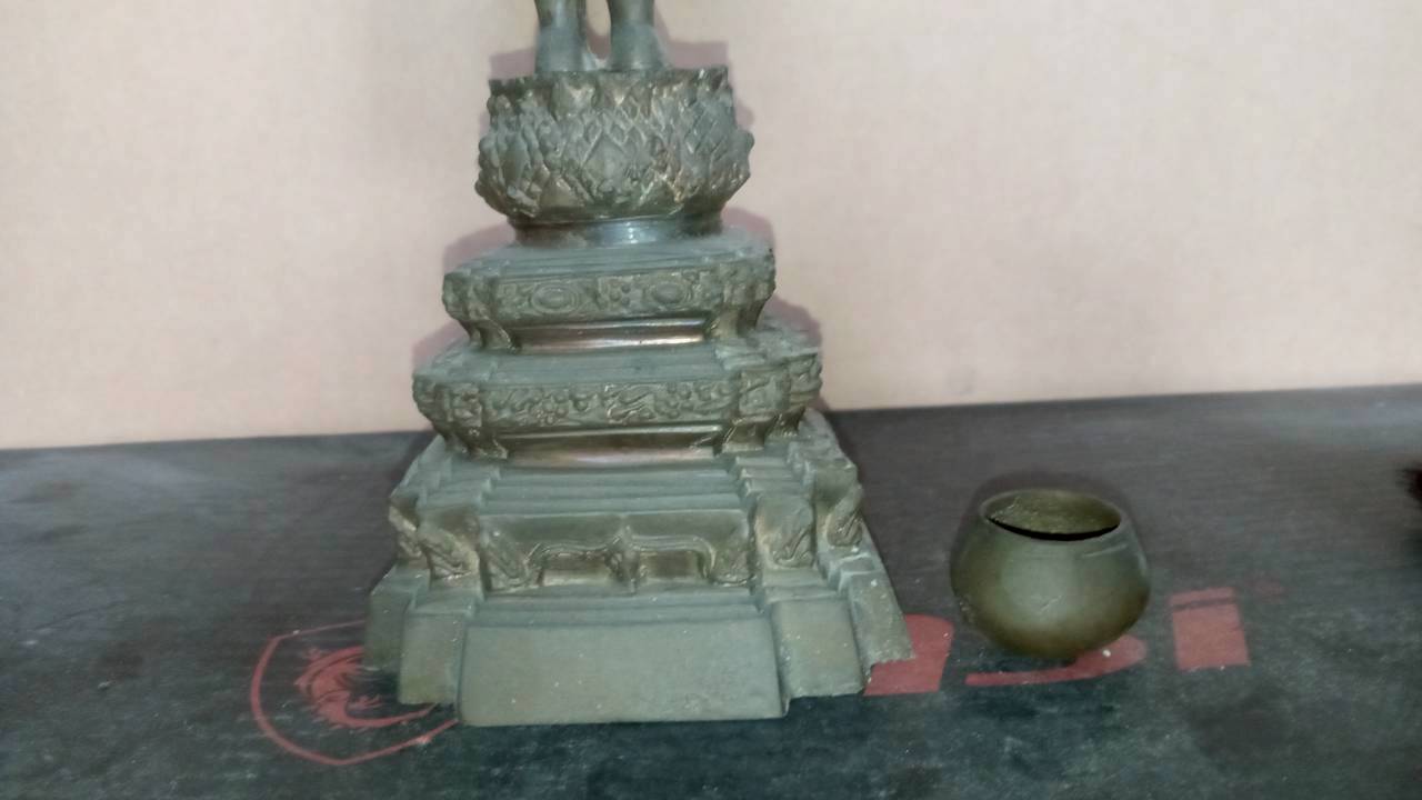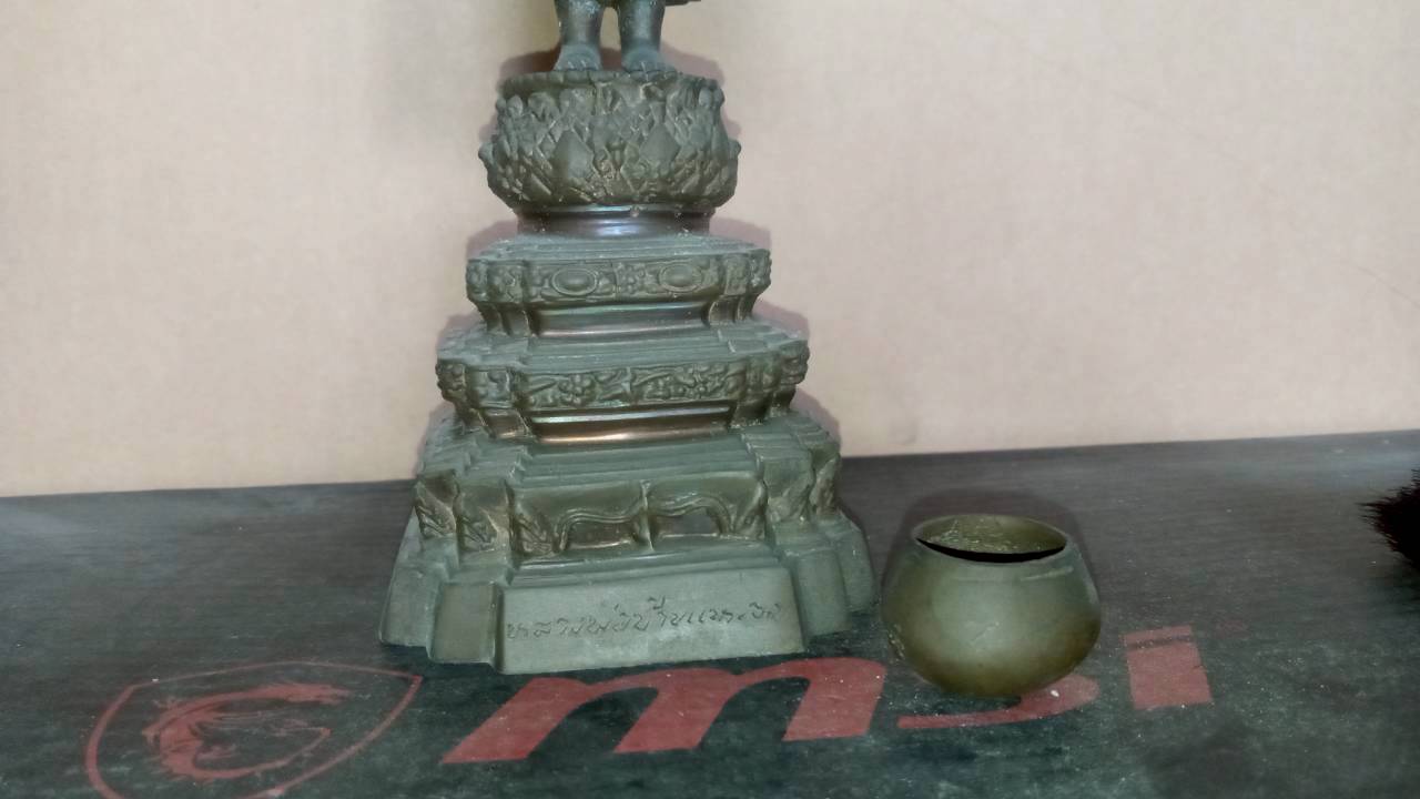 พระบูชา หลวงพ่อบ้านแหลม ยืนถือบาตร เท้ากว้าง 1 นิ้ว ฐาน 3.6 นิ้ว สูง 14 นิ้ว เนื้อทองเหลือง ผืวหิ้ง บาตรถอดได้ ไม่ทราบที่ |