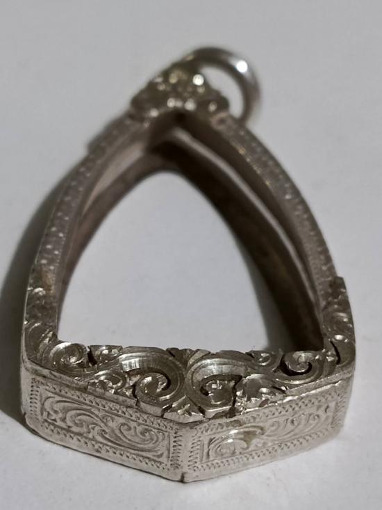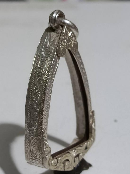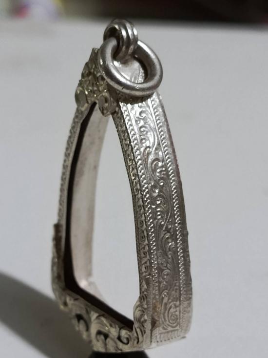 กรอบเงินแท้สั่งตัด ใส่พระรูปหล่อ หลวงพ่อโสธร หนาหนัก 5.64 กรัม แกะลายลึก หัวสิงห์ใหญ่หนา |