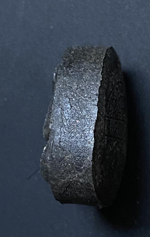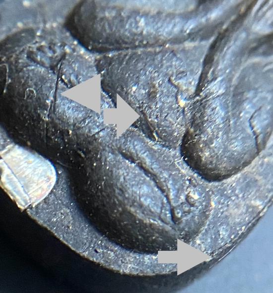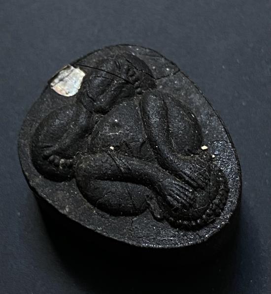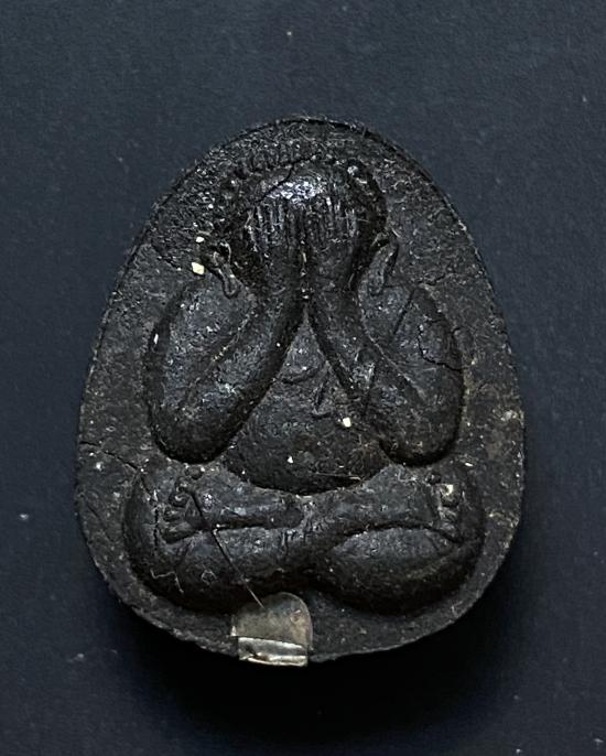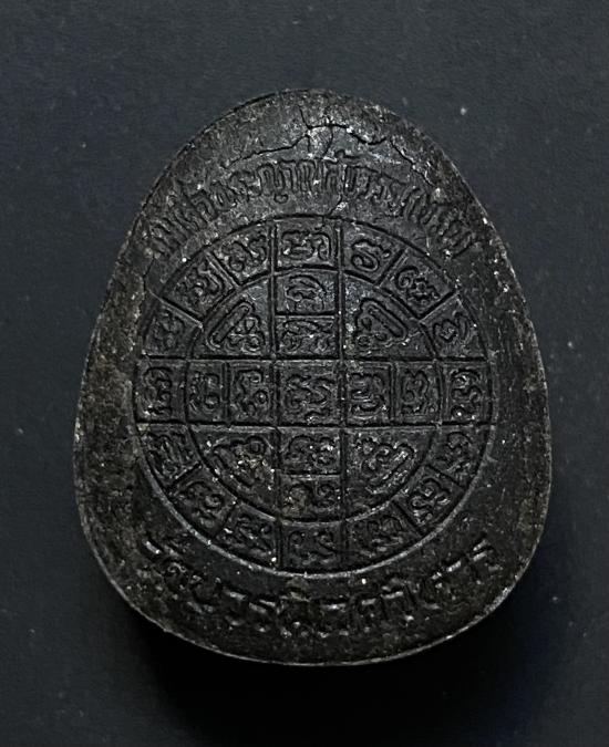 พระปิดตายันต์ดวงเล็ก ปี2523 สมเด็จพระญาณสังวร (เจริญ) วัดบวรนิเวศ_(เนื้อผงใบลานดำปลดหนี้)_มีเส้นเกศา_พิมพ์หนา_