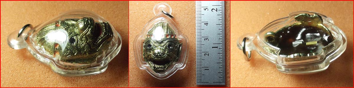 หน้ากากหนุมาน หลังผังตะกรุด หลวงพ่อเพี้ยน วัดเกริ่นกฐิน เนื้อโลหะ ปี 2553 เลี่ยมสวยพร้อมใช้-1
