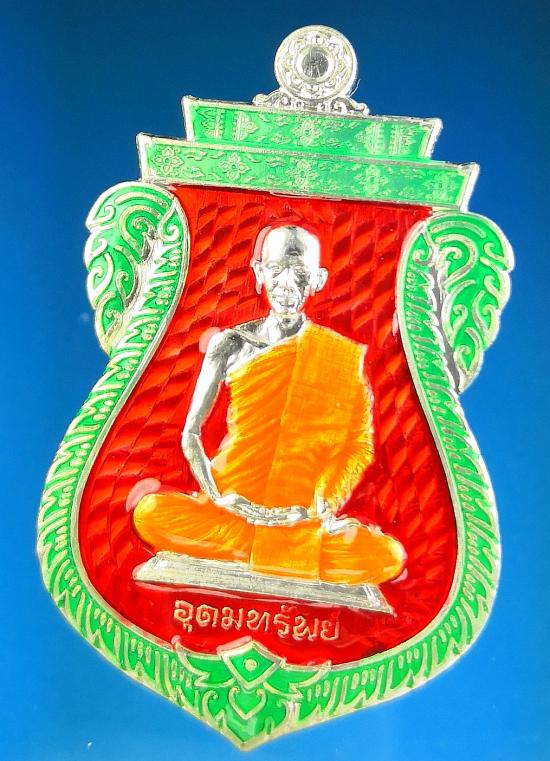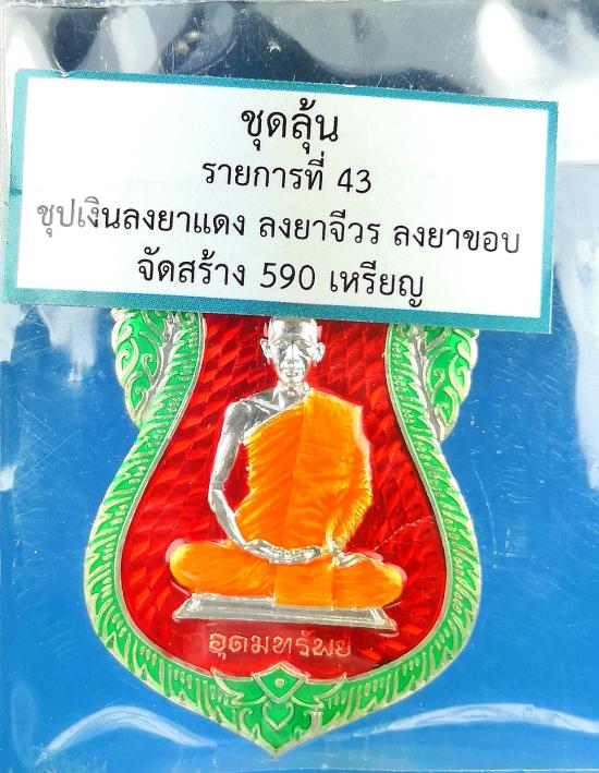 400-เคาะเดียวเหรียญเสมา รุ่นอุดมทรัพย์ ลังลุ้น พระอาจารย์ต้อม วัดท่าสะแบง ร้อยเอ็ด เนื้อชุบเงินลงยาแดง ลงยาจีวร ลงยาขอบ เลข๒๗๓
