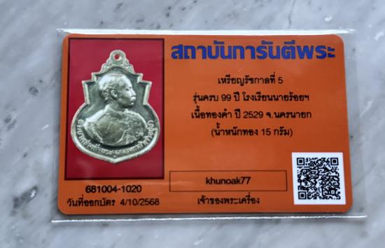 เหรียญ ร 5 ทองคำ โรงเรียนนายรัอย จปร. ปี 2529 หนัก 15 กรัม