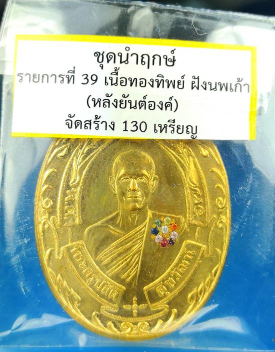 1300-เคาะเดียว เหรียญรูปไข่ พิมพ์แกะสด รุ่น อุดมทรัพย์ ชุดทองคำนำฤกษ์ (เนื้อชนวนมวลสาร ๒๐๐ ล้าน) พระอาจารย์ต้อม วัดท่าสะแบง ร้อยเอ็ด เนื้อทองทิพย์ ฝังพลอยนพเก้า เลข ๑๓๐