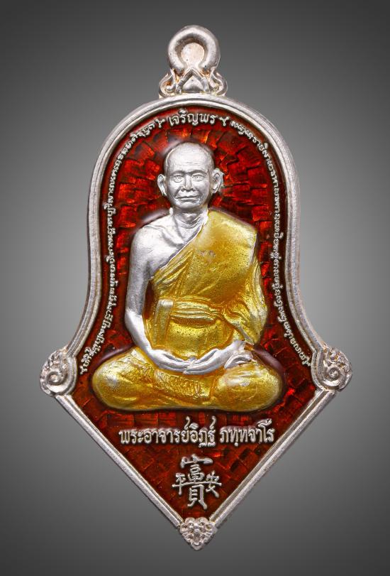 เหรียญรูปเหมือนเต็มองค์ จำปี รุ่น" เจริญพร " หลวงพ่ออิฏฐ์ วัดจุฬามณี เนื้อเงินลงยาแดง