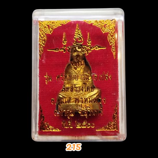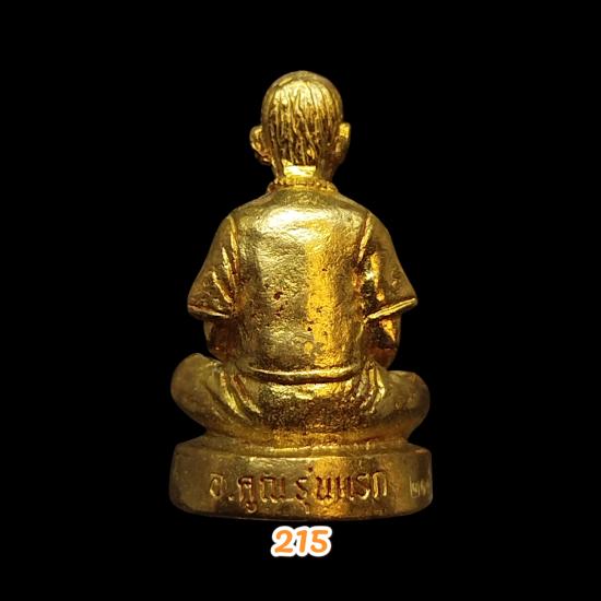รูปหล่อ อ. เปล่ง บุญยืน รุ่นแรก อ. คูณ พรหมตวง ปี 2560 จ. สุรินทร์ เนื้อทองเหลือง หมายเลข 215 ขนาด 1.5 นิ้ว ก้นอุดผงพราย 59 ตน + ตะกรุดเงินยันต์สาริกาป้อนเหยื่อ จำนวนสร้าง 599 องค์ สภาพเดิม สวยมาก พร้อมกล่อง ไม่ผ่านการใช้ มีประสบการณ์