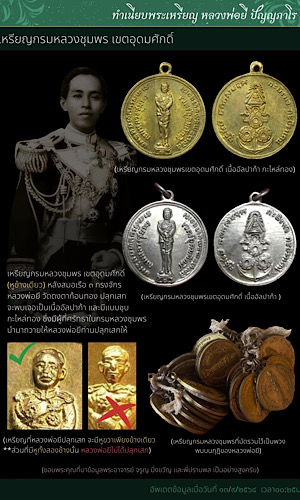 >> เหรียญกรมหลวงชุมพรเขตอุดมศักดิ์(หูข้างเดียว) หลังสมอเรือ, ๓ กงจักร หลวงพ่อยี วัดดงตากัอนทอง ปลุกเสก ปี 2505 พบเจอเป็น เนื้ออัลปาก้า และมีแบบ "ชุบกะไหล่ทอง" ซึ่งมีผู้ศรัทธาในองค์กรมหลวงชุมพรฯ นำมาถวายให้"หลวงพ่อยี" ท่านปลุกเสกให้ ซึ่งเหรียญที่หลวงพ่อยีปลุกเสก จะมี"หูขวาเพียงข้างเดียว"