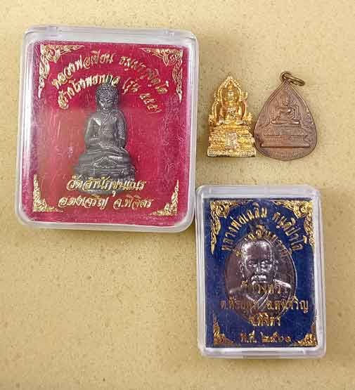 กริ่งดีดนํ้ามนต์ หลวงพ่อเขียน วัดสํานักขุนเณร สร้างโรงพยาบาล (รุ่น 555) กล่องเดิม + รูปหล่อ + เหรียญหลวงพ่อเพชร พิจิตร + เหรียญ รุ่น เฉลิมบารมี หลวงพ่อเฉลิม วัดวังหว้า พิจิตร