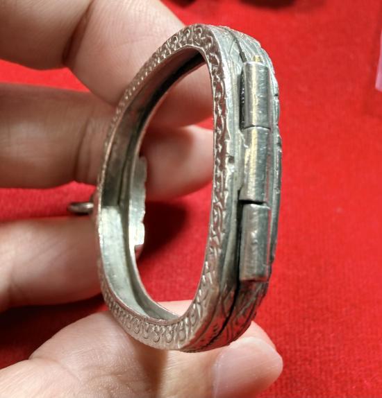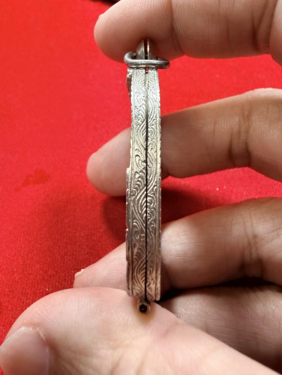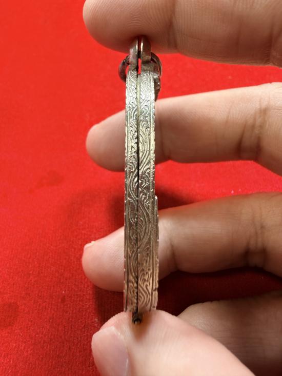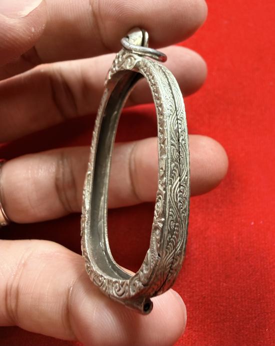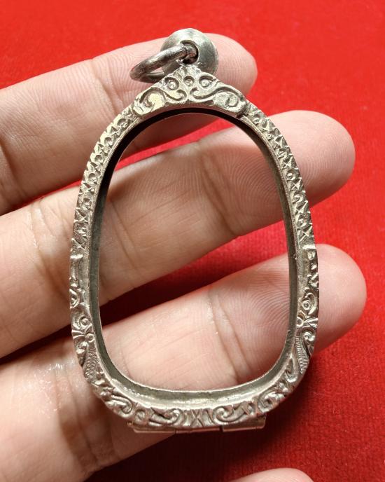 กรอบเงินเก่าแท้สั่งตัด ทรงใส่เหรียญ เสือหลวงพ่อสุดวัดกาหลง แกะลายลึก หัวสิงห์ใหญ่หนา มีหน้ำหนัก ด้านล่างเกลียวเปิดปิดได้