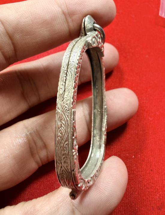 กรอบเงินเก่าแท้สั่งตัด ทรงใส่เหรียญ เสือหลวงพ่อสุดวัดกาหลง แกะลายลึก หัวสิงห์ใหญ่หนา มีหน้ำหนัก |