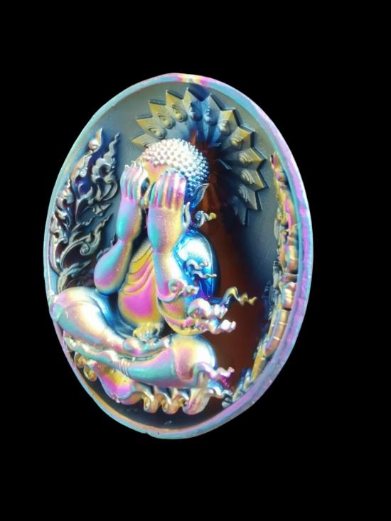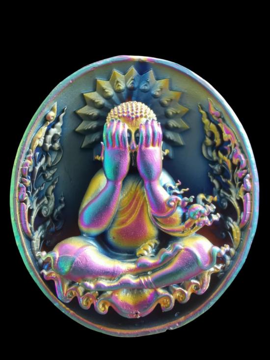 พุทธศิลป์ พระปิดตา มหาจักรพรรดิ์ หลวงพ่อสุชาติ วัดศิลาดอกไม้ เพรชบูรณ์ องค์ไว้แจก ไม่มีกล่อง ชุบไทเทเนี่ยม หลังจารมือ เลขโค้ดไม่มี