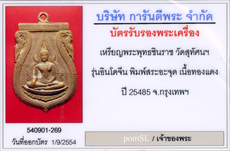 เหรียญพระพุทธชินราชอินโดจีน บล็อกสระอะจุด คม ลึก พร้อมบัตร G ครับ