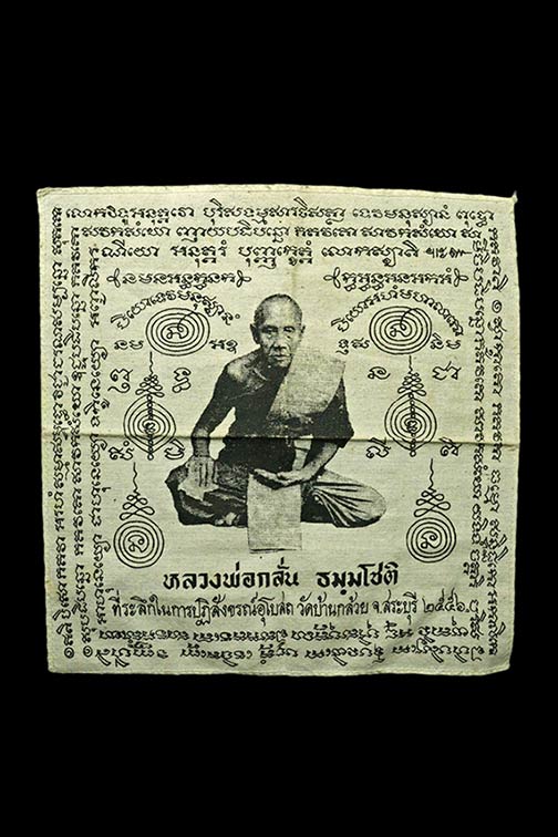 ผ้ายันต์ หลวงพ่อกลั่น วัดบ้านกล้วย จ.สระบุรี ปี56 หลวงปู่บัว วัดศรีบูรพาราม ร่วมปลุกเสก ขนาด 8x8x นิ้ว
