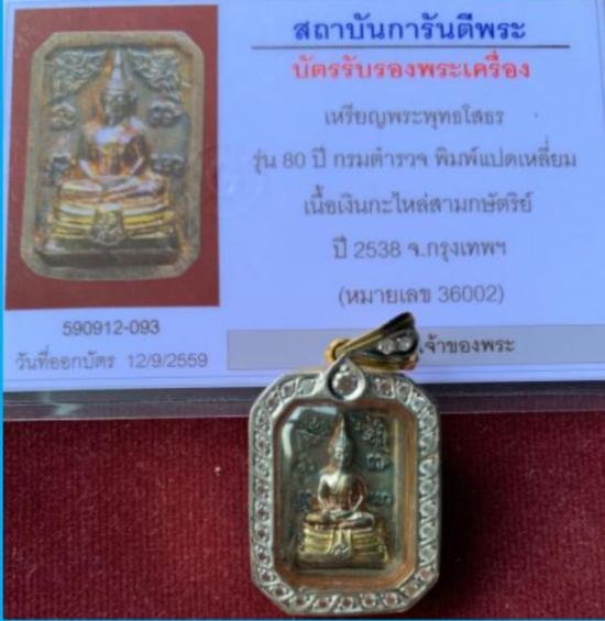 หลวงพ่อโสธร พระเหรียญแปดเหลี่ยม เนื้อเงินสามกษัตริย์ 80 ปี กรมตำรวจ ปี 2538