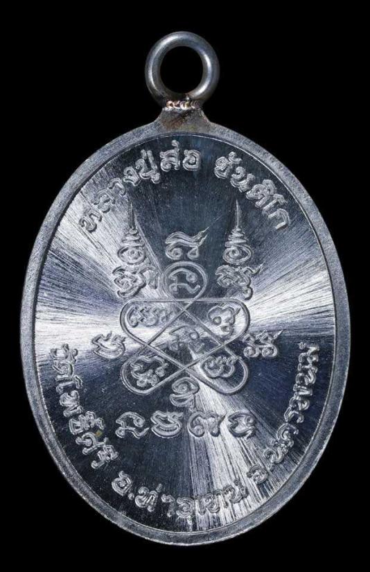เหรียญ "ห่วงเชื่อม" หลวงปู่สอ ขันติโก วัดโพธิ์ศรี จ.นครพนม เนื้อเงินลงยาแดงจีวรเหลือง ริบบิ้นเขียวน้ำเงิน เบอร์ ๒๒