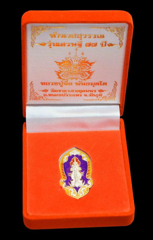 เหรียญท้าวเวสสุวรรณ รุ่น เศรษฐี 77 ปี หลวงปู่จื่อ พนฺธมุตโต วัดเขาตาเงาะอุดมพร อ.หนองบัวระเหว จ.ชัยภูมิ เนื้อเงินลงยาพื้นม่วงขอบเหลืองส้ม กรรมการ เบอร์ 5 สวยมากๆ