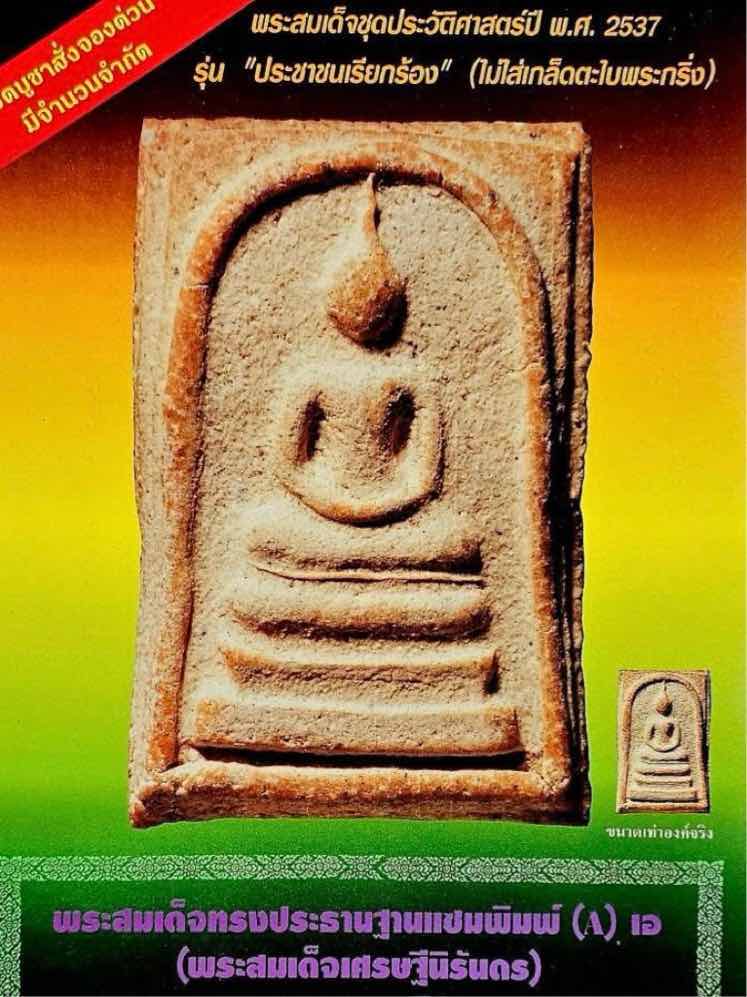 200.- ems พระสมเด็จชุดประวัติศาสตร์ ปี 2537 รุ่น ประชาชนเรียกร้อง เจ้าคุณถนอม คณะ2 วัดสุทัศน์ กดมือ เสกไตรมาส 37 และเสกพิธีใหญ่ จันทร์เพ็ญ 3 วัน 3 คืน ภายในวัด เกจิชื่อดังในยุคมากมาย (ราคาจอง 1,000)