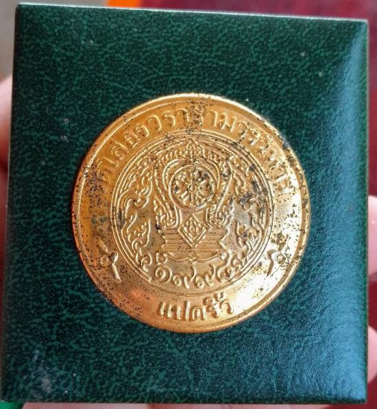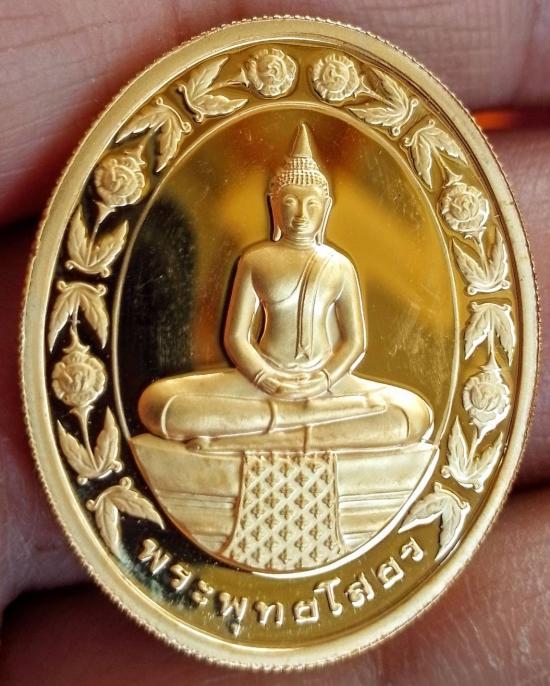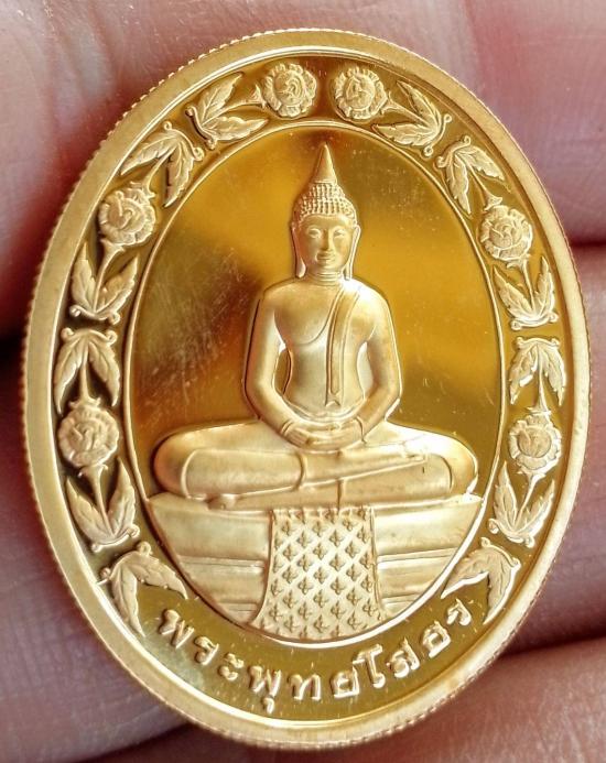 เหรียญพระพุทธโสธร รูปไข่ลายดอกไม้ วัดโสธรวรารามวรวิหาร จ.ฉะเชิงเทรา ปี 2542 เนื้อทองแดงขัดเงาชุบทอง Number 04278 พร้อมกล่องเดิมสภาพสวย