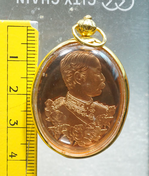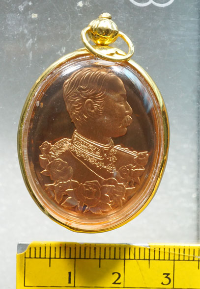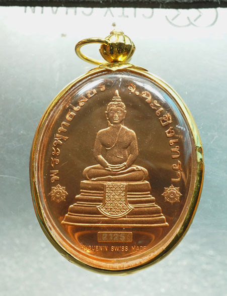 เหรียญพระพุทธโสธร หลังร.๕ บล๊อก "HUGUENIN SWISS MADE NO.2125 เลี่ยมทองผ่าหวาย