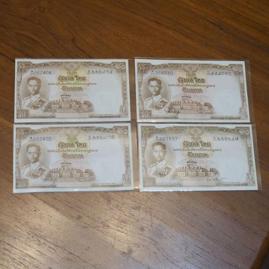 ธนบัตร 10 บาท โทมัส แบบ 9 จำนวน 4 ใบ สวย ๆ