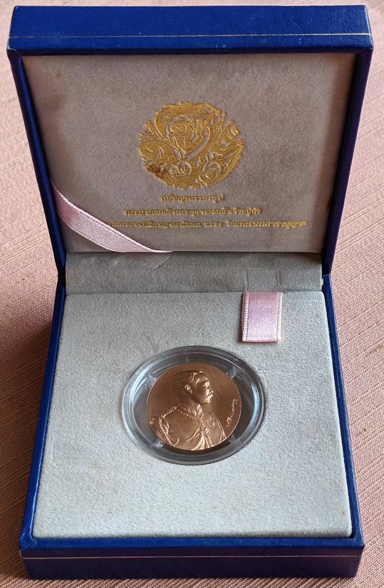 *เคาะเดียว* เหรียญพระบรมรูปรัชกาลที่5 รุ่นกาญจนาภิเษก หลังจปร. monnaie de paris ((( เนื้อบรอนซ์ ))) กล่องเดิม+ใบ