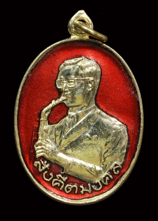 ชื่อพระเครื่อง *เคาะเดียว* เหรียญสังคีตมงคล(ในหลวงทรงดนตรี) รุ่นสร้างอาคารสดุดีมหาราชา ปี2530 ((( เนื้อกะไหล่ทองลงยาสีแดง )))
