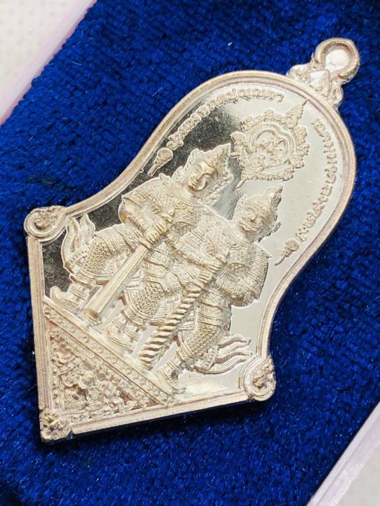 เหรียญท้าวเวสสุวรรณ หลวงพ่ออิฏฐ์ วัดจุฬามณี พิมพ์จำปีใหญ่ รุ่นคู่บารมี เนื้อเงินบริสุทธิ์ เลข ๒๘๑ พร้อมกล่อง