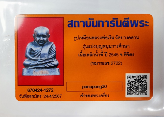 เคาะเดียว ไมต้อง วัดใจ รูปหล่อหลวงพ่อเงิน วัดบางคลาน โครงการแบ่งบุญ หนุนการศึกษา เนื้อเหล็กน้ำพี้ ปี 2545 สวยและหายาก หลวงพ่อรวย ปาสาทิโก เป็นประธานจุดเทียนชัย เลขมงคล ๒๗๒๒ รับประกันพระแท้ตามกฎ พร้อมบัตรทางเวป |