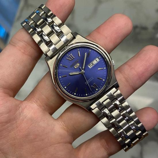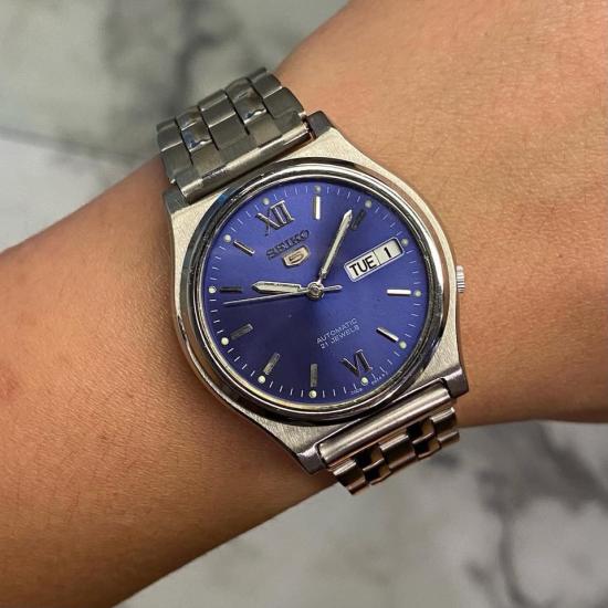 classic seiko 5 น้ำเงิน ... หลังโชว์กลไก ... มือสองวินเทจ สภาพสวย (ทรงคล้าย tissot prx เท่ๆ เลย) |