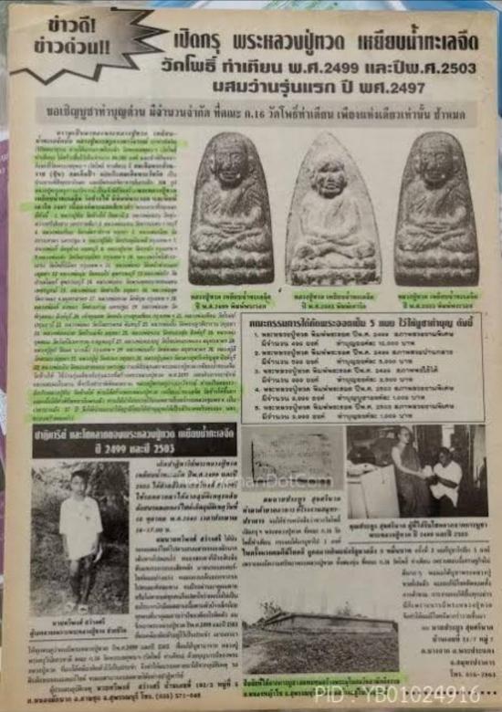 พระหลวงปู่ทวด วัดโพธิ์ ปี2502 พระดีที่น่าใช้ ประวัติการสร้างชัดเจน ทั้งเกจิคณาจารย์ ปลุกเสก และ ผสมมวลสารปี2497 อาจารย์ทิม วัดช้างให้มาร่วมจัดสร้างและปลุกเสก พระหลวงปู่ทวดเนื้อว่าน วัดโพธิ์ท่าเตียน (วัดพระเชตุพนฯ) ปี 2502 สร้างพิมพ์ใกล้เคียงกันกับพิมพ์ หลวงปู่ทวดวัดช้างไห้ ปีพ.ศ. 2497 อายุการสร้างใกล้เคียงกับปีพ.ศ. 2497 มากที่สุด โดยปกติพระเครื่องหลวงปู่ทวดในยุคต้นๆ ในแต่ละวัด มักจะสร้างจากพระคุณเจ้าที่เคยรับนิมนต์เข้าร่วมปลุกเสกพระเครื่องหลวงปู่ ทวดในปี 2497 วัดช้างไห้ ปัตตานี เช่น อาจารย์นอง วัดทรายขาว พ่อท่านฉิ้น วัดเมือง ยะลา ในส่วนที่เป็นสหธรรมมิกหรือเพื่อนกันกับ พระอาจารย์ทิม ธัมมธโร (พระครูวิสัยโสภณ ทิม) วัดช้างให้ คือท่านพระอาจารย์สงัด วัดโพธิ์ท่าเตียน ท่านได้สร้าง พระหลวงปู่ทวดวัดโพธิ์ ในปลายปี 2502 ออกให้เช่าบูชาและร่วมทำบุญในต้นปี 2503 จำนวน 84,000 องค์ ซึ่งห่างจากปี 2497 เป็นเวลาแค่ 6 ปี มาปัจจุบันตอนนี้ก็มีอายุการสร้าง 50 กว่า ปีแล้ว มวลสารที่ใช้ในการจัดสร้าง ว่านรุ่น 108 แบบเดียวกันกับที่ใช้สร้างพระหลวงปู่ทวด รุ่น 2497 ที่วัดช้างไห้ปัตตานี ดินกากยายักษ์ ผสมด้วยใบลานที่ใช้จารึกตำราพิชัยสงคราม เนื้อเก่าบางส่วนของพระหลวงปู่ทวดรุ่น2497ที่ได้จากอาจารย์ทิม วัดช้างไห้ จากปัตตานีมาถวายให้ ในการจัดสร้างนิมนต์ สมเด็จพระวันรัตปุ่น เป็นประธานฝ่ายสงฆ์ พระอาจารย์ทิม ธัมมธโรจากวัดช้างไห้ ปัตตานี มาร่วมในพิธีปลุกเสก ร่วมกับคณาจารย์ที่มีชื่อเสียงในยุคนั้น รวม 108 รูป เช่น หลวงพ่อสอน วัดเสิงสาง หลวงพ่อเงิน วัดดอนยายหอม หลวงพ่อสุด วัดกาหลง หลวงพ่อทบ วัดชนแดน หลวงพ่อเทียน วัดโบสถ์ หลวงพ่อคง วัดสรรพรส หลวงพ่ออั้นวัดพระญาติ หลวงพ่อทองอยู่ วัดใหม่หนองพะอง หลวงปู่ดู่ วัดสะแก หลวงปู่สี วัดสะแก หลวงพ่อแก้ว วัดช่องลม หลวงพ่อแทน วัดธรรมเสน หลวงปู่เทียม วัดกษัตราธิราช หลวงปู่โต๊ะ วัดประดู่ฉิมพลี หลวงพ่อกี๋ วัดหูช้าง หลวงปู่นาค วัดระฆัง หลวงพ่อเส็ง วัดกัลยาณมิตร หลวงพ่อจง วัดหน้าต่างนอก หลวงพ่อมุ่ย วัดดอนไร่ หลวงพ่อถิร วัดป่าเลยไลย์ หลวงพ่อนอ วัดกลางท่าเรือ หลวงพ่อสุด วัดกาหลง หลวงพ่อหวล วัดพิกุล หลวงพ่อเต๋ วัดสามง่าม หลวงพ่อแพ วัดพิกุลทอง หลวงพ่อผล วัดหนัง บางขุนเทียน หลวงพ่อเทียน วัดโบสถ์ หลวงพ่อหน่าย วัดบ้างแจ้ง หลวงพ่อจวน วัดหนองสุ่ม หลวงพ่ออุตตมะ กาญจนบุรี หลวงปู่ธูป วัดแคนางเลิ้ง พระหลวงปู่ทวดเนื้อว่าน วัดโพธิ์ ปี 2502 นี้ พบที่กรุ บริเวณวิหารกรมหลวงชุมพร ภายในวัดโพธิ์ ประมาณ ปี 2536 ซึ่งทางวัดได้มีการบูรณะหลังคาโบสถ์ และช่างที่