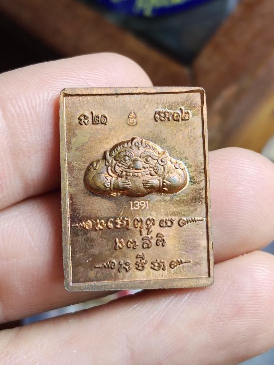 เหรียญแสตมป์ องค์พ่อจตุคามรามเทพ หลังราหู ตอกโค็ต และเลขลำดับพระ1391 เนื้อทองแดง