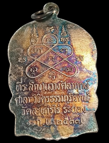 เหรียญนั่งพาน-หลวงปู่ทิม วัดละหารไร่ รุ่นมงคลศิลาฤกษ์ ปี2537 เนื้อทองแดงกะไหล่เงิน กล่องเดิม