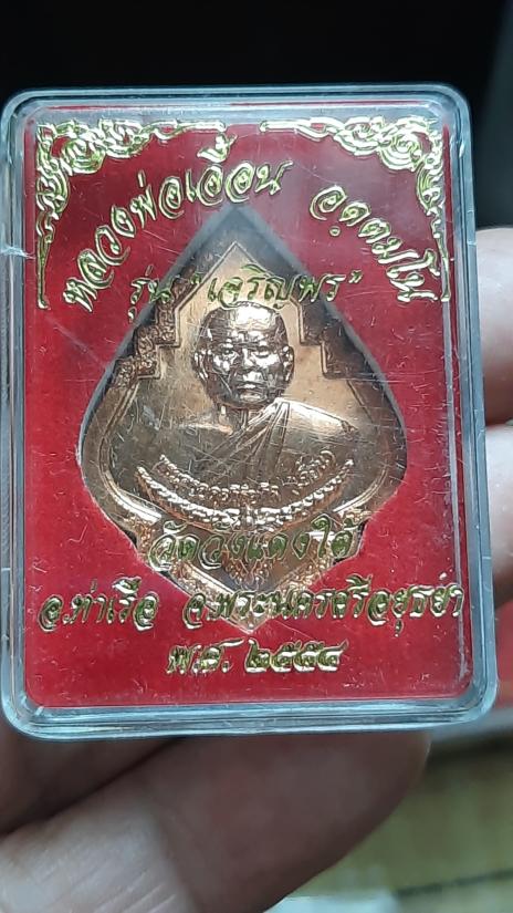 เหรียญเจริญพรบน หลวงพ่อเอื้อน วัดวังแดงใต้ จ.อยุธยา ปี 2554 หมายเลข1566 พร้อมกล่อง |