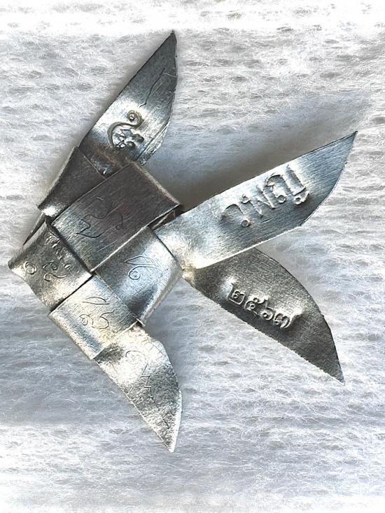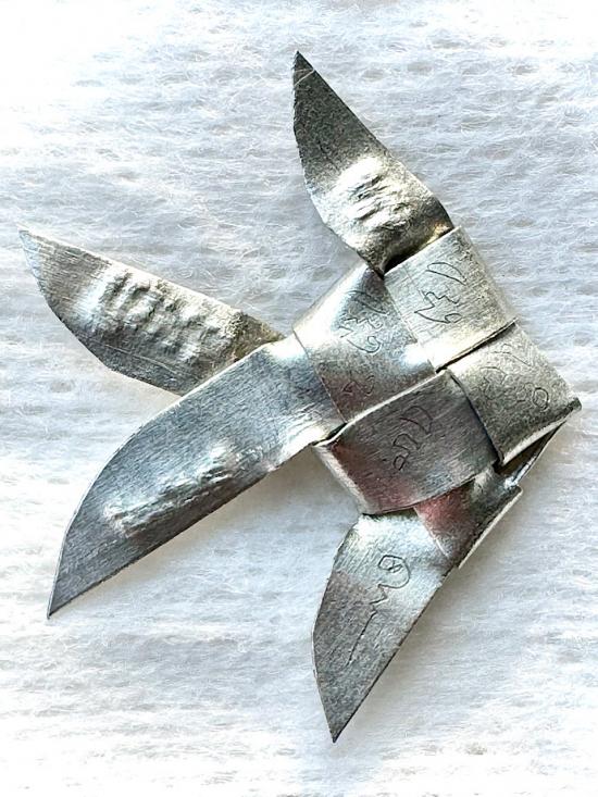 ปลาตะเพียน หลวงพ่อใจ ฐิตาจาโร วัดพระยาญาติ(ปากง่าม) จ.สมุทรสงคราม เนื้อดีบุก ตอกโค้ด (ศิษย์สายวิชา หลวงพ่อคง วัดบางกะพ้อม และหลวงปู่ใจ วัดเสด็จ หายาก) สภาพเดิม สร้างน้อย 300กว่าตัว จารมือทั้งตัว |
