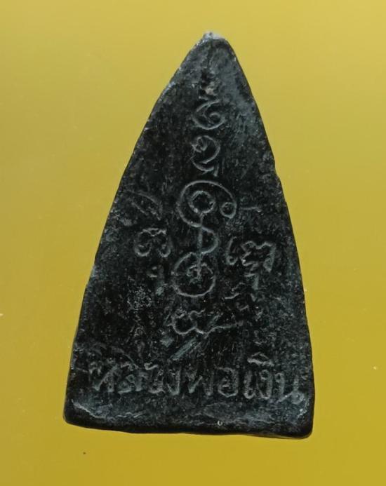 มีลักษณะด้านหน้าเป็นรูปของหลวงพ่อเงินนั่งในท่าสมาธิเต็มองค์ภายในซุ้มเรือนแก้ว ด้านหลังมีอักขระยันต์ ข้างล่างใต้ยันต์มีตัวหนังสือเขียนชื่อ หลวงพอเงิน เท่าที่พบเห็นมีอยู่ ๒ เนื้อ ได้แก่ เนื้อดินดำ และเนื้อดินแดง บางองค์เคลือบชแล็ก บางองค์เคลือบยางไม้ บางองค์ก็ไม่เคลือบ