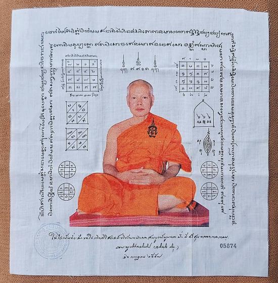ผ้ายันต์หลวงพ่อ พระมหาสุรศักดิ์ วัดประดู่ (พระอารามหลวง) จ.สมุทรสงคราม หมายเลข 05874 ปี 57 ปั๊มตราวัด ขนาดกว้าง 12 นิ้ว ยาว 12 นิ้ว