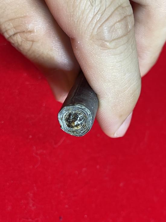 ตะกรุดโทนเสาร์ 5 เมตตาชาตรี เป็นตะกรุดที่อุดผงพรายกุมาร ผงพุทธคุณต่างๆ และผงกรุพระรอดลำพูน ที่ตำบดละเอียดใส่ไว้ในตะกรุดปิดหัวท้ายด้วยเทียนชัยพุทธาภิเษก โดยหลวงพ่อสาคร นั่งปรกอธิฐานจิตปลุกเสกบนหอยันต์ วัดหนองกรับ 9 วัน ถึงวันเสาร์แรม 5 ค่ำเดือน 5 นับเป็นตะกรุดอันทรงคุณค่าของหลวงพ่อสาคร อีกรุ่นหนึ่ง ที่หลวงพ่อได้บรรจงจัดสร้างขึ้นตามตำรับโบราณคณาจารย์สายหลวงปู่ทิม วัดละหารไร่.....ตัวตะกรุดลงพระคาถาทางเมตตาชาตรี ซึ่งปกติพระคาถาที่นำมาลงในตะกรุดรุ่นนี้ เป็นคาถามหาอุด แต่หลวงพ่อได้นำมาถอดพระคาถา 5 ตัว ให้ครบ 30 ตัว เพื่อเพิ่มพลังทางด้านเมตตาเสริมเข้าไป กลายเป็นเน้นทางเมตตา แคล้วคลาดภยันตรายต่างๆ ซึ่งใช้เวลานานในการถอดสูตรเป็นพิเศษ กว่าจะสำเร็จจนเกิดเป็นตะกรุดเมตตาชาตรีนี้ ซึ่งดีพร้อมทุกๆ ด้าน ขนาดความยาวประมาณ 3 นิ้ว เนื้อตะกั่ว จารมือ ตอกโค้ดดอกจันทร์หัวท้าย 2 ด้าน และโค้ดตัวอุใหญ่ ปัจจุบันเริ่มจะยากแล้ว อนาคตยิ่งจะหายากกว่านี้อีกครับ |