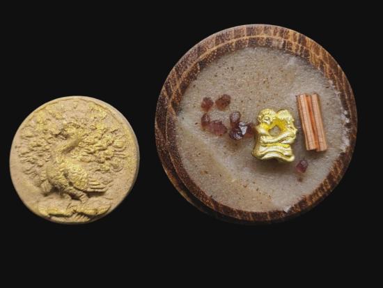 พญายูงคำ รุ่นแรก เนื้อมวลสารเก่าครุบาออปัดทอง และตลับไม้สีผึ้งเนื้อหอม รังผึ้งร้าง ขวางเดือนขวางตะวัน รุ่นแรก ฝังอิ่น ตะกรุด ในเมตตาบารมี เจ้าปู่จั่นต่า กาวิสาละ ครูบากฤษดา เมตตาเษก