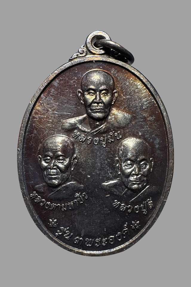 เหรียญ 3 พระองค์ หลวงปู่มั่น หลวงตามหาบัว หลวงปู่ลี ที่ละลึกสร้างเจดีย์ วัดป่าภูผาแดง จ.อุดรธานี ปี 2556 |