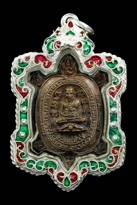 "วัดใจ ปีใหม่ครับ"เหรียญหล่อพญาเต่าเรือน หลวงปู่หลิว วัดไร่แตงทอง รุ่น สุขใจ เนื้อทองแดง ปี 2537 จ.นครปฐม เลี่ยมเงินลงยาพร้อมใช้ สภาพสวยครับ