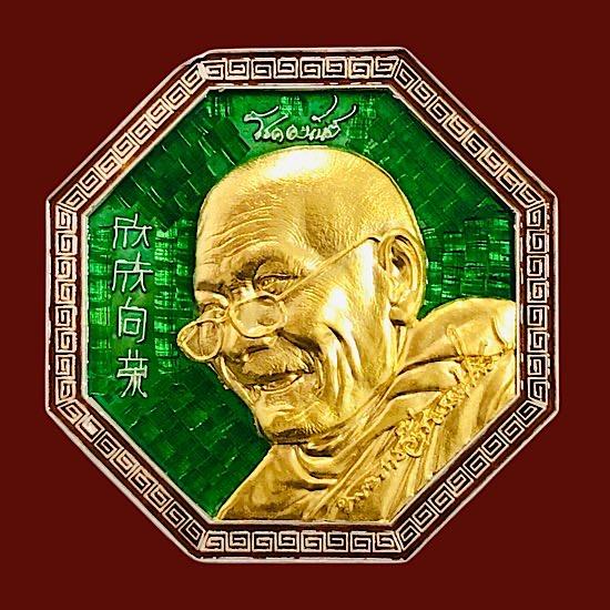 หลวงปู่มหาศิลา โชคอนันต์ เนื้อเงินหน้าทองคำ ลงยาเขียว จมูก100 เลข73/1668เลขสวย กล่องเดิมราคาจอง7,999 สวยแชมป์ๆ