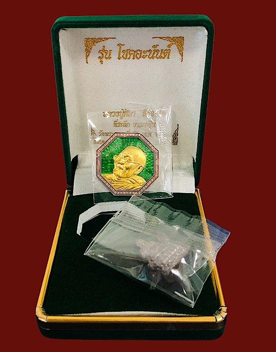 ชื่อพระเครื่อง หลวงปู่มหาศิลา โชคอนันต์ เนื้อเงินหน้าทองคำ ลงยาเขียว จมูก100 เลข73/1668เลขสวย กล่องเดิมราคาจอง7,999 สวยแชมป์ๆ