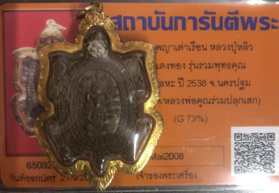 เหรียญพญาเต่าเรือน หลวงปู่หลิว วัดไร่แตงทอง รุ่นรวมพุทธคุณ เนื้อนวโลหะ ปี2538 จ.นครปฐม เลี่ยมทองพร้อมบัตรรับรอง รับประกันตามกฏครับ